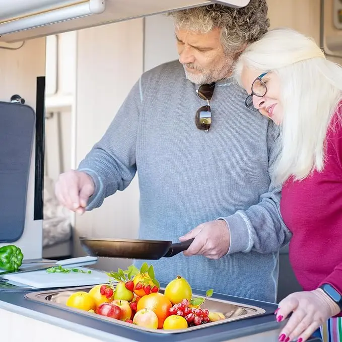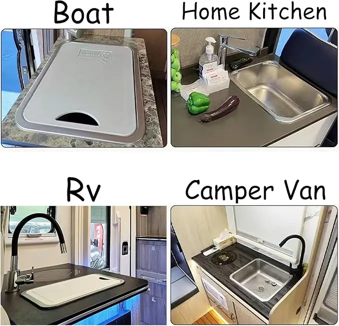 【Perfect RV Sink Set】With a hinged filter plug, drain pipe, Cutting board, convenient for cutting vegetable, cook, washing dishes. Whether you are in the home kitchen, rv, boat or bar, It's very convenient to use.
