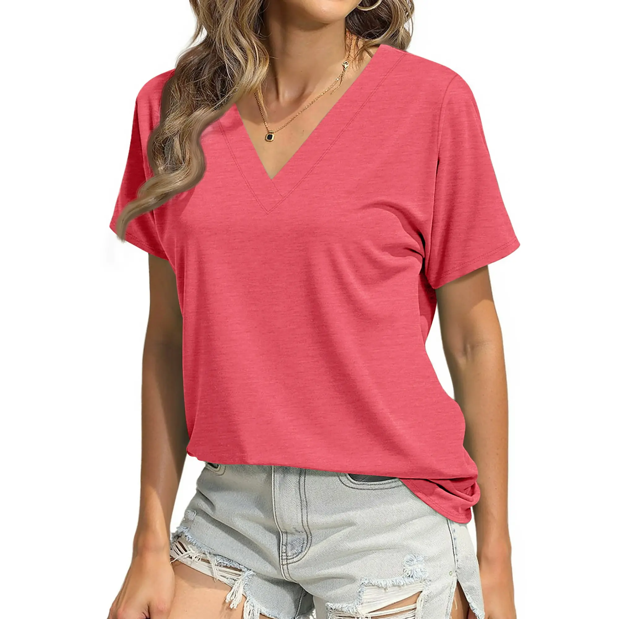 MOSHU Women's Bright Red Deep V Casual Shirt (M)