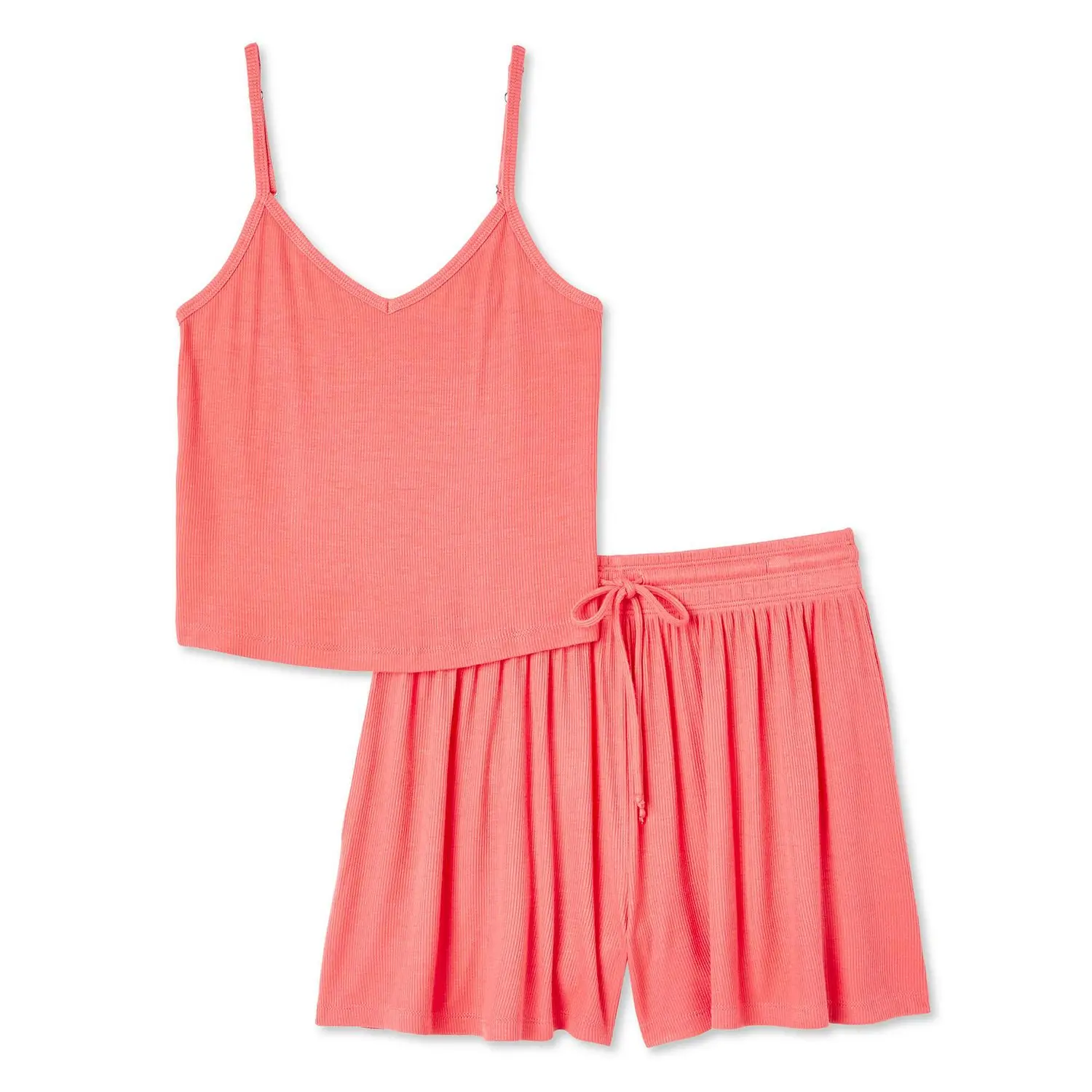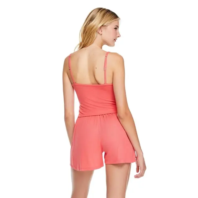 NOBO No Boundaries Women's Rib Pajama Coral 2-Piece Set (S/P)