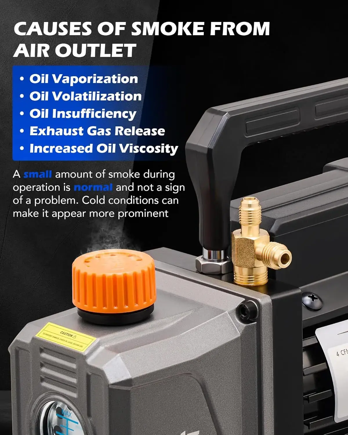 - User-Friendly Designs: The oil reservoir of this AC vacuum pump includes a convenient sight glass and scale for oil level monitoring and timely refills. Its nonslip handle keeps everything easily portable for transport or storage between jobs