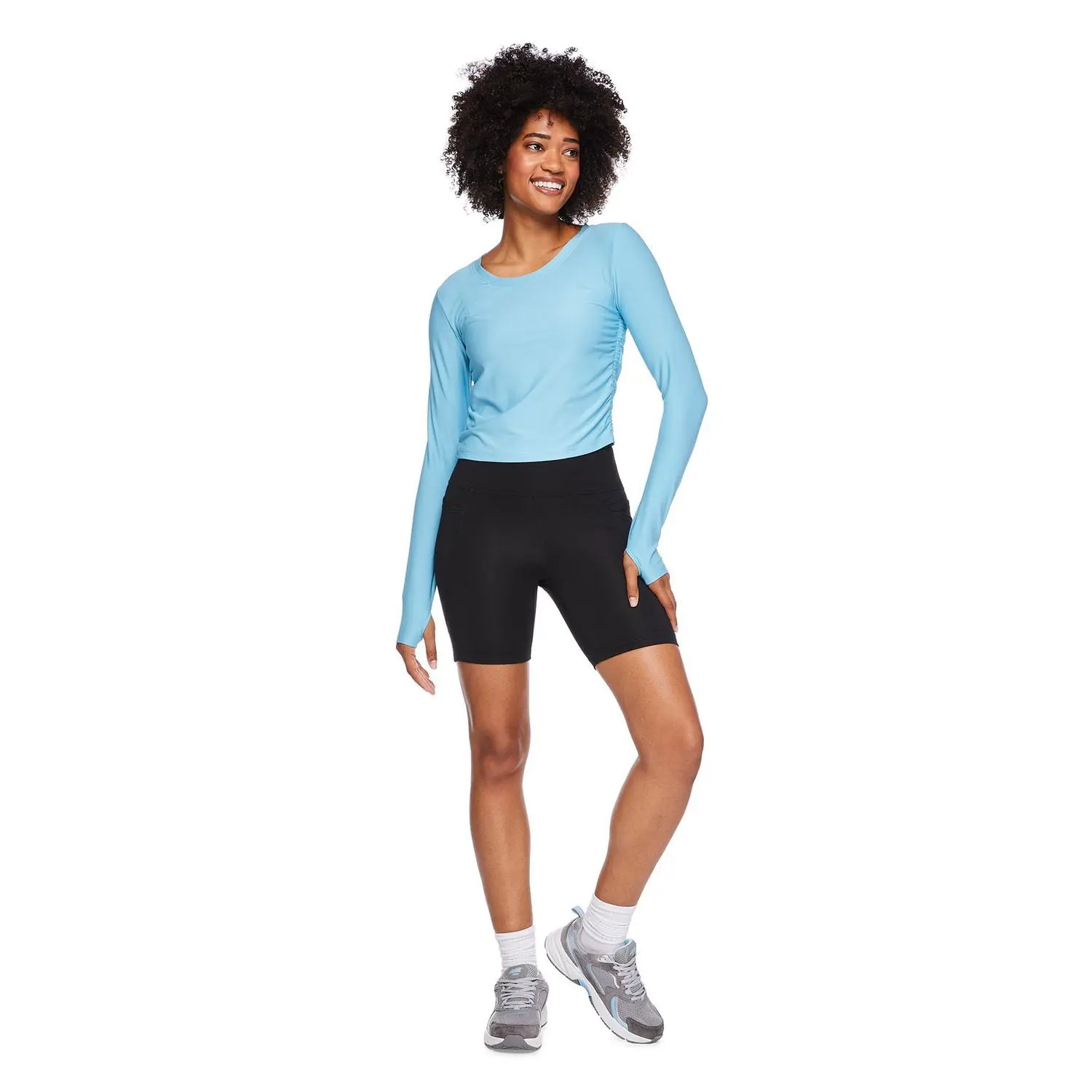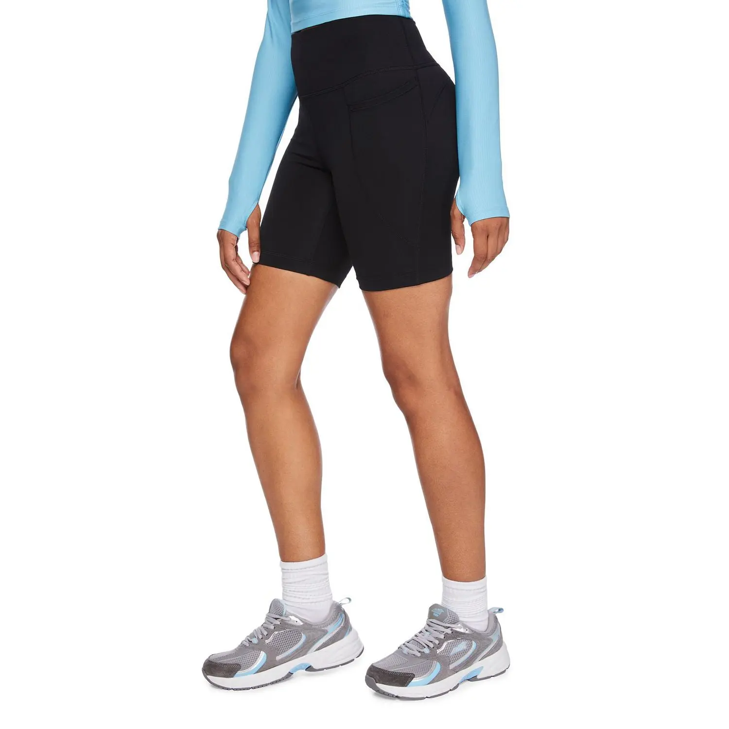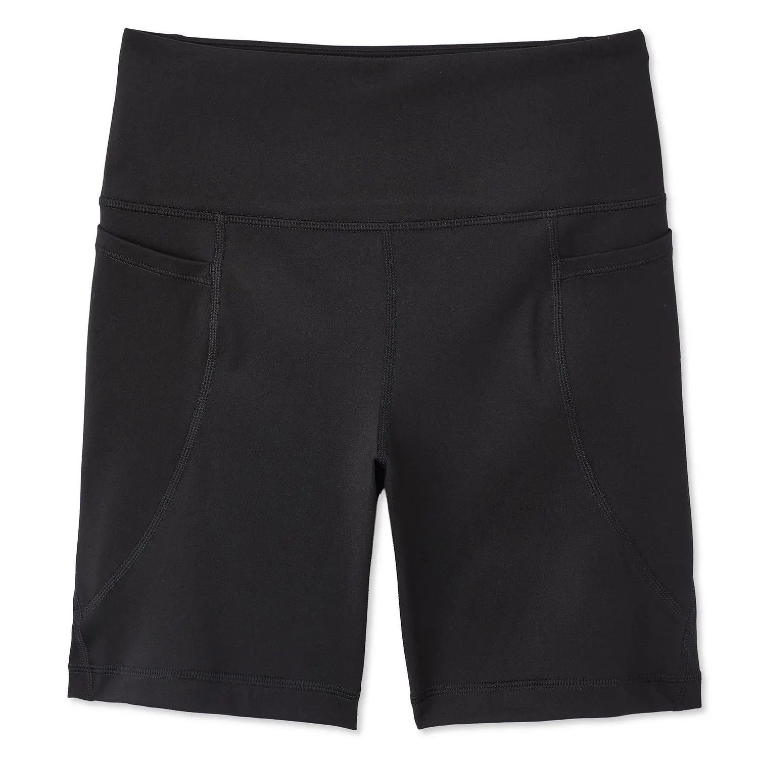 Athletic Works women's short is designed for comfort, coverage, and movement during any workout. Made of interlock knit, they feature DRI-MORE wicking technology to help keep you cool and dry as you exercise. These shorts include a wide elasticized waistband for a secure fit, 2 panel pockets for small essentials, a 7" inseam for added coverage, and a stretch fit that moves with you. Pair them with any sports bra or tee to complete your active look.