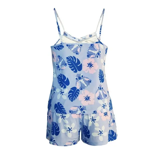 Let her dive into tropical dreams with this blue floral Lilo & Stitch girls 2-piece sleepwear set. The tank top is paired with matching shorts adorned with a playful front ribbon, creating a fun and relaxed vibe perfect for warmer nights. Covered in a bright blue floral print, the set brings a splash of island charm to her bedtime routine, ideal for fans of Lilo and Stitch’s adventurous spirit. Comfy and cute, this sleepwear set is just right for a little touch of paradise at bedtime.
