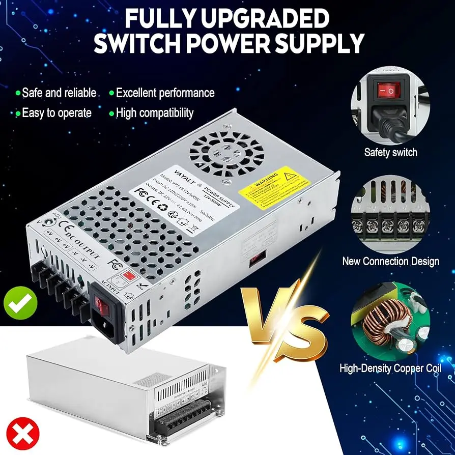 VAYALT DC 12V 41.6A 500W Switching Power Supply, 110V/220V AC to DC Converter, Universal Regulated Switching,12V Power Supply for CCTV Camera System,3D Printer,Led Strip,Computer Project