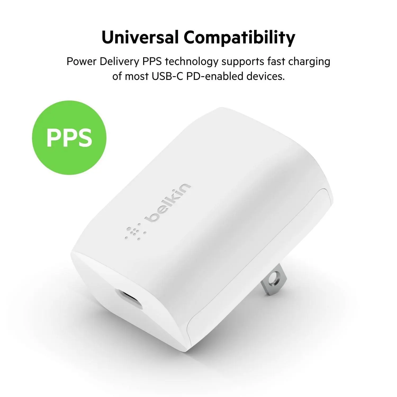 Safely fast charge an iPhone, iPad, Samsung Galaxy, or other compatible device with our powerful and travel-ready 20W USB-C Wall Charger. This compact charger with USB-Power Delivery means fast charging for your USB-PD-enabled devices. PPS technology detects the connected device and negotiates the right amount of power needed for the ideal charge. Purposefully designed to be travel-friendly, this pocket-sized charger easily fits to any environment at home or when you’re out and about.