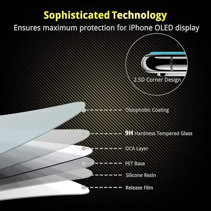 - Bubble-Free: Self-expels air bubbles when bonding with the screen, and coated with hydrophobic and oleophobic layers to repel oil residue from fingerprints.