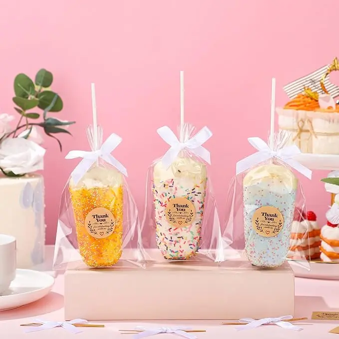 - Clear Rice Krispie Treat Bags: our clear rice krispie treat bags package offers comprehensive content for your convenience and utility; With purchase, you gain possession of 100 clear rice krispie treat bags, 100 elegantly made white sticks, 100 charming white bow ribbons, and 100 heartfelt [Thank you] stickers, meeting your different using demands