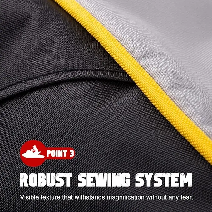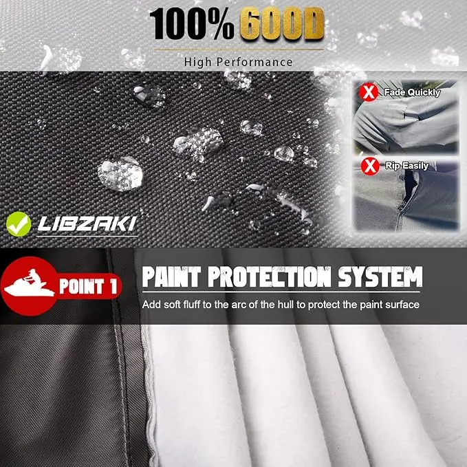 - 【100% 600D Oxford Fabric】:The jet ski cover adopts absolutely high quality 600D Oxford fabric,coated with environment friendly PU on the reverse side.Its total thickness reaches 0.35mm!Total weight of L size reaches 6LB!The fabric is soft and firm,anti-tearing,anti-fading,anti-ultraviolet and anti-aging.