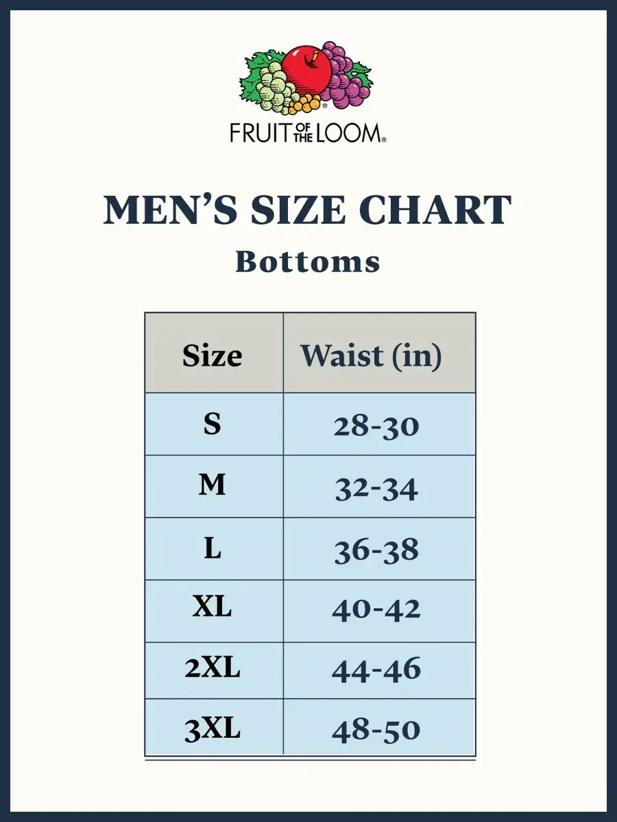 The brief has a traditional fly design with reinforced seams for better support. Fruit of the Loom Item No. 91% Cotton, 5% Polyester, 4% Spandex.