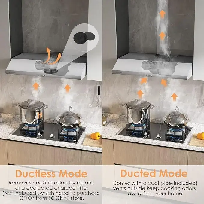 - 【3-Speed Efficient Airflow】--The 30-inch wall-mounted range hood is equipped with a powerful motor, has 3 different speeds, and the maximum airflow is 250CFM, which can quickly remove the cooking fumes and harmful substances, thereby reducing the damage to the skin and health.Converts to ductless range hood with Carbon Filter Kit Purchase Part # CF007 (Sold Separately)