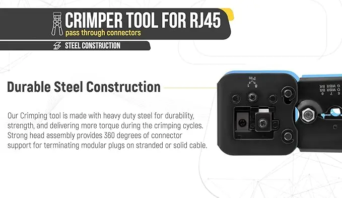 - Built to last – The steel construction is durable and lasts you many years of cutting, stripping and crimping internet cables. The action feels firm and is suited for heavy duty performance.