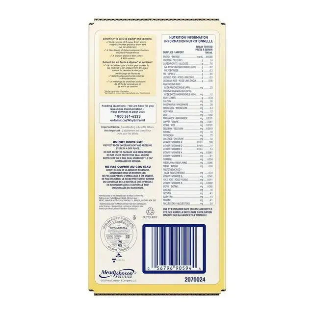 - Enfamil A+ infant formula contains an EXPERT RECOMMENDED LEVEL OF DHA1 — a natural component of breast milk and a prominent Omega-3 fat in the infant brain † Koletzko B et al. J Perinat Med. 2008; 36: 5-17