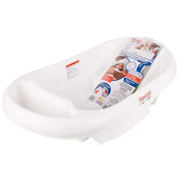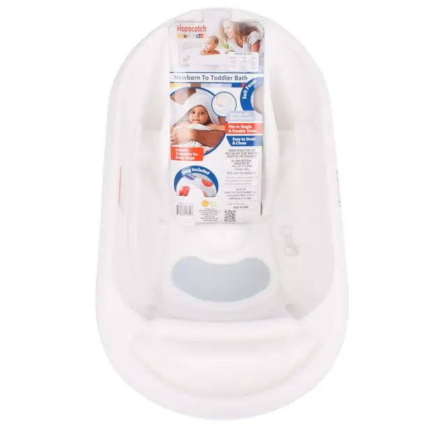 Make bath time easy with the Hopscotch Lane Newborn to Toddler Bathtub! This stylish bath grows with your child from newborn to infant then toddler and in-between. This 3 staged soft mesh sling cradles your newborn to provide them with extra comfort and support during bath time. When they outgrow the sling, this bath also provides reclining support with soft foam until they can sit up on their own! Fits in single and double sinks with added storage at the base for bath supplies. Number Of Stages - 3