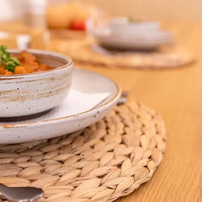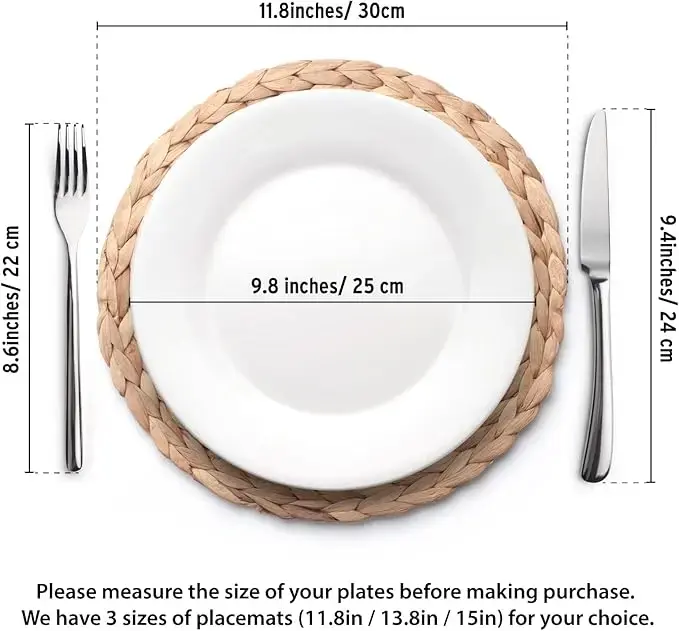 6 Pack, Rattan Round Place mats, Natural Hand-Woven Water Hyacinth Placemats