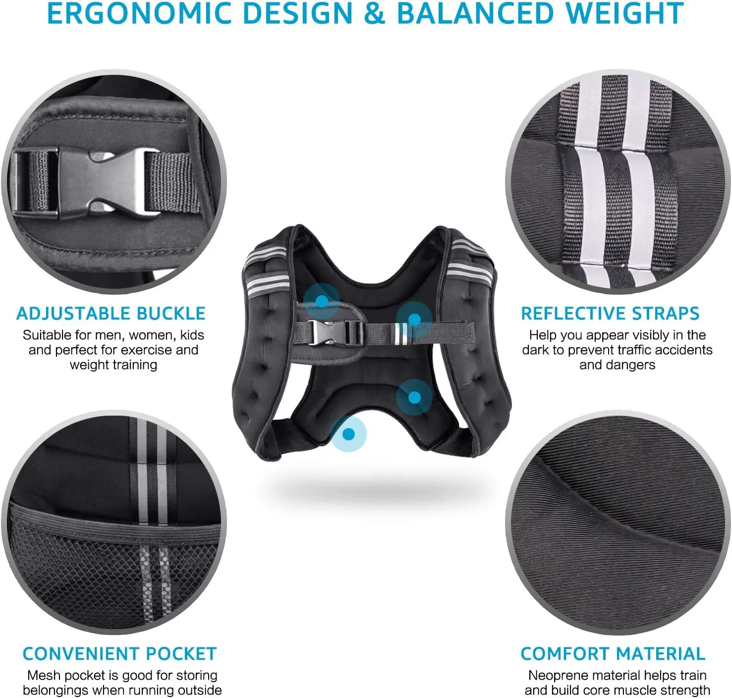- Made of soft neoprene material and mesh pocket on the back to save room to add extra weight