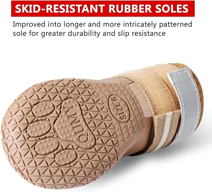 - RUGGED: Tough anti-slip sole of dog boots provides stability and traction, protection from sharp thorns and hot pavement.