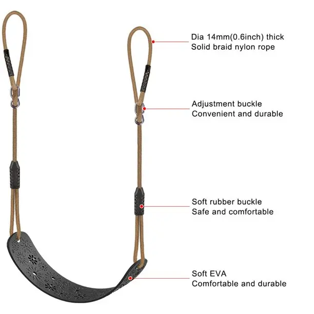- 【High-Quality Material】Our swing seat is crafted from soft, durable EVA plastic that’s weatherproof for long-lasting use.