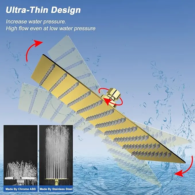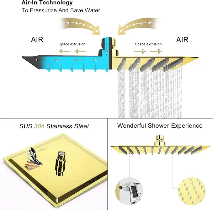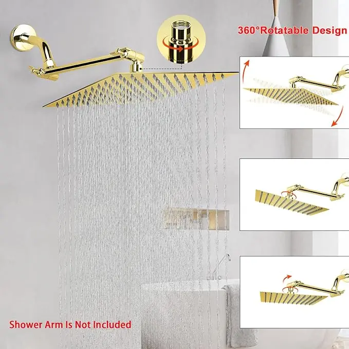 Nearmoon Rain Shower Head (12 inch, Chrome Gold)