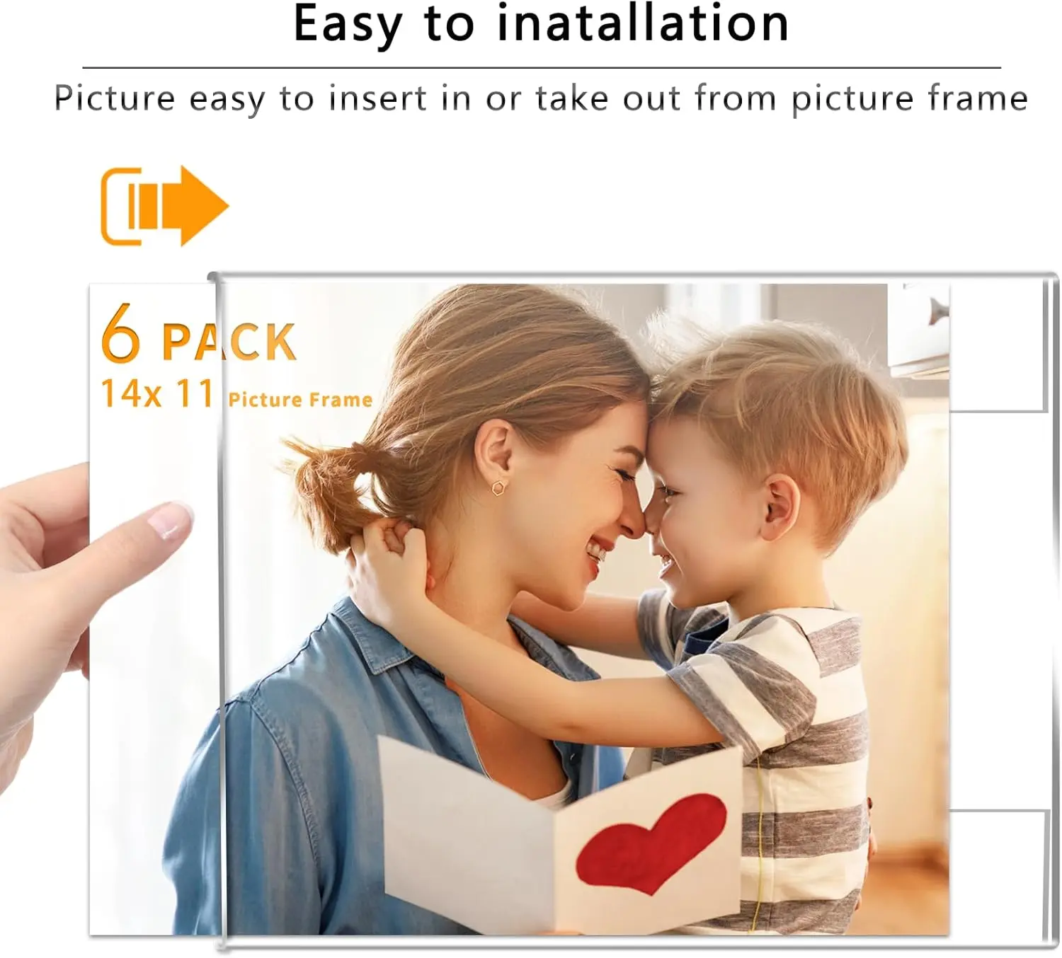 - 【Easy to Switch Out】11x14 picture frame easy to instert in or take out from clear picture frames ,no need to remove the clear acrylic picture frames. Can be used as for photo canvas certificate collage poster.