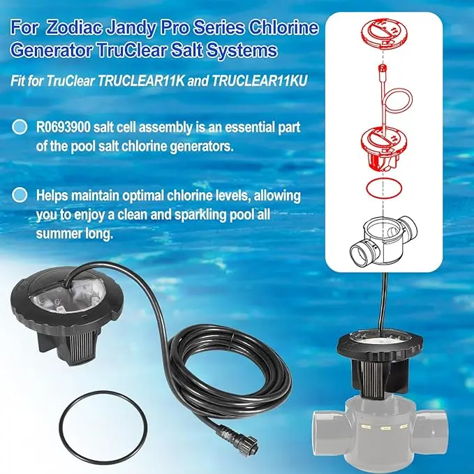 - APPLICATION: The R0693900 salt cell assembly replacement part is compatible with Zodiac Jandy Pro Series Chlorine Generator TruClear Salt Systems. Fit for TruClear TRUCLEAR11K and TRUCLEAR11KU swimming pool and spa salt water chlorine generators.