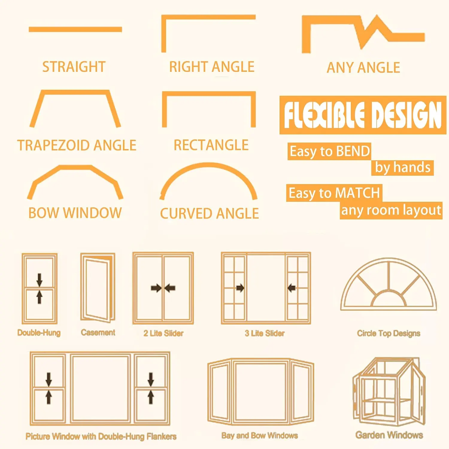 - ANY SHAPE: No matter what position shape or room layout, our curtain track can flex to fit. Just bend, no worry about breaking, it looks great in any setting with a wide range of application scenarios