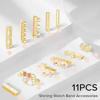 - Endless Combinations: With 11 interchangeable watch band accessories, our watch charms offer limitless possibilities for customization. Mix and match the charms to create a look that perfectly complements your style and mood. Whether you prefer a chic and sophisticated look or a playful and trendy vibe, these charms have got you covered