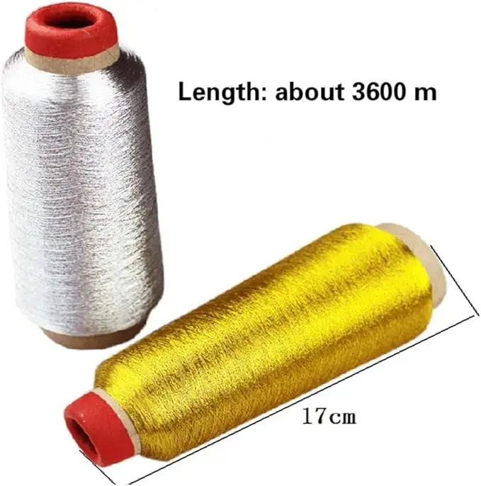 Metallic Thread Embroidery Gold Silver Machine Embroidery Threads Polyester Sewing Thread Spools for Embroidery (Gold)
