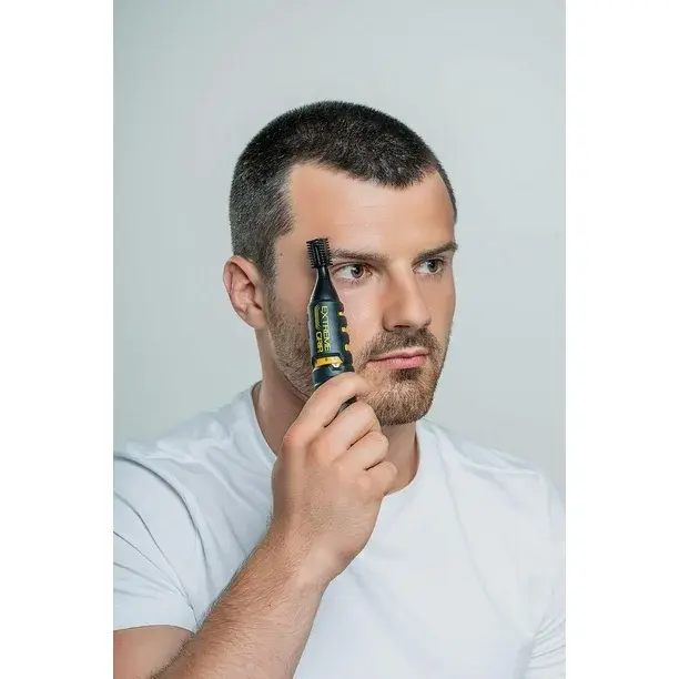 The Wahl Lithium Battery Extreme Grip Ear, Nose, & Eyebrow Trimmer comes with a vertical nose trimmer to get rid of unwanted hair. Use the convenient guide comb to trim 4 different lengths 2mm, 3mm, 4mm, & 5mm or completely remove hair by using trimmer without a guide comb. For easy clean up rinse the blade under water. The Extreme Grip trimmer comes with a silicone housing that protects it from everyday bumps and offers non-slip grip while in use. When done, simply store the trimmer with accessories in the soft case.
