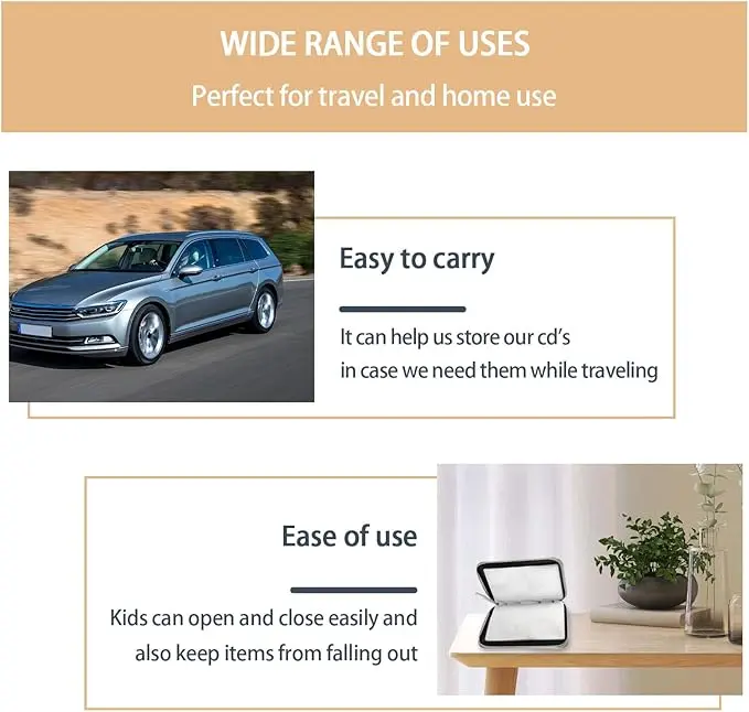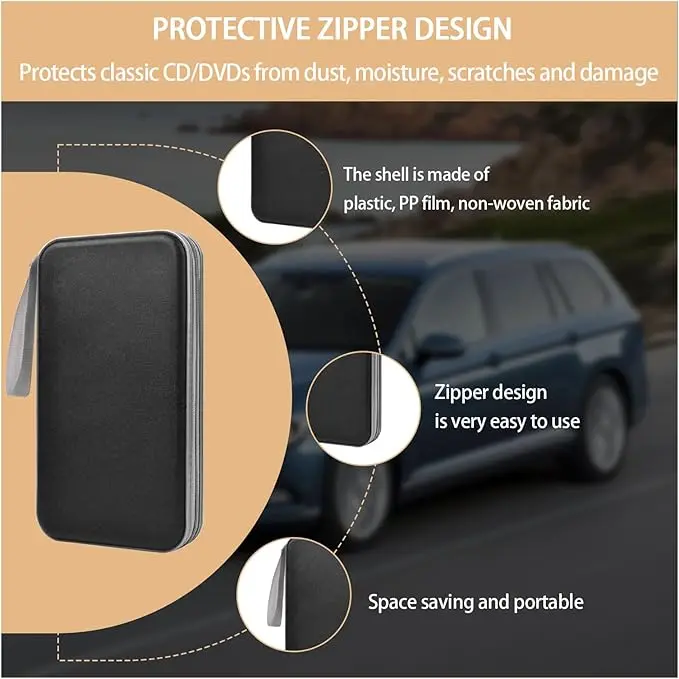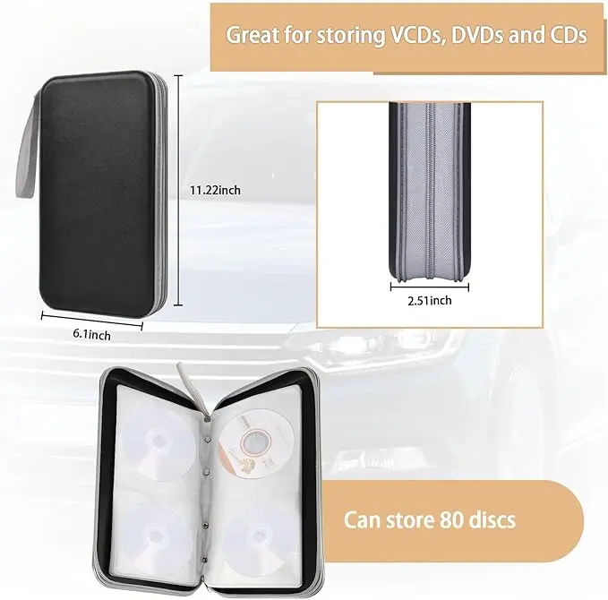 - 【Zip Design】: This CD storage case is with zip closure, which makes it very easy to reach the CDs. It can hold up to 80 CDs and zips up easily. The stylish design of the zip closure prevents your precious CDs from falling out. At the same time it can better protect your CDs.