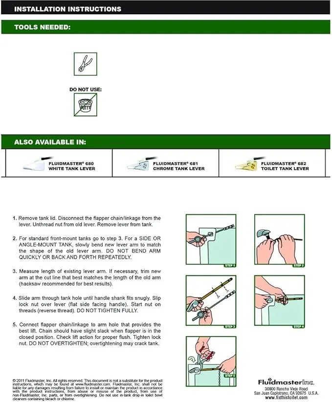 Fluidmaster Toilet Tank Lever 684 Designer Chrome