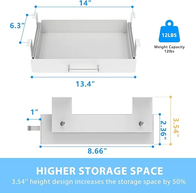 🎄【Ergonomic Storage Solutions】 Entire office drawers for under desk is 12.6 inches width and 8 inches deep, and has enough space for pencils, paper and standing desk accessories. Ideal for your home office under table storage or workstation organization whether in bedroom, living room, dinning room.