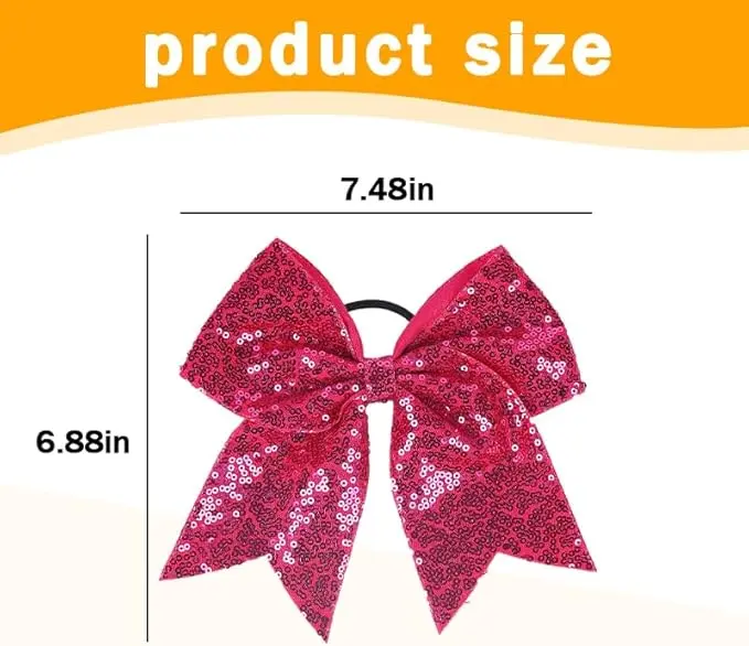 - 8 Inch Large Hair Bow Tie for Women Girls: This womens hot pink sequin hair bow is about 6.5*8 inches, the bow is large and prominent, very eye-catching, as long as you wear this glitter hair bow tie, you will be the center of attention in any occasion, womens hot pink big hair bow tie, cheerleaders large bow hair ties