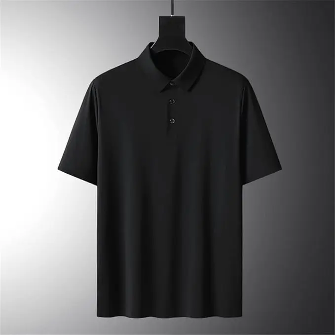 Men Polo Shirt Classic Short Sleeve Tee Breathable Cool Quick Dry Nylon Men Casual T-Shirt (4XL)