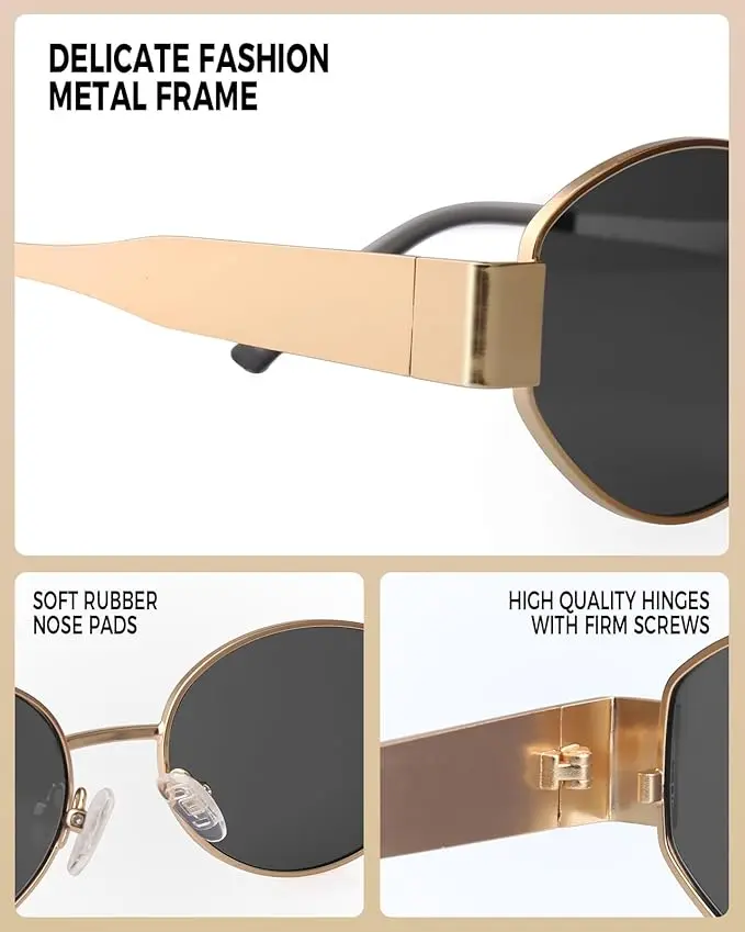 - HIGH-QUALITY MATERIALS: Featuring high-quality metal frames, soft rubber nose pads and solid hinges, these retro trendy oval sunglasses are stylish and durable, providing the most comfortable wearing experience while maintaining texture and style. Personalize your style from a variety of frame and lens colors including grey, brown and green lenses. The stylish small oval frame is ideal for any day with sunshine and easy to match any outfits, offering comfort all day long