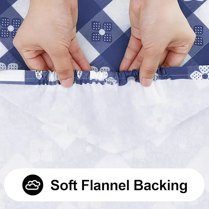 Rectangle Vinyl Table Cloth, Waterproof Elastic Fitted Tablecloth with Flannel Backing, Plastic Table Cover for Picnic, Camping, Outdoor (White & Navy, 30"x48")