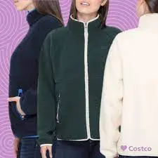 - Contrast fabric binding along front zipper opening, collar edge, bottom hem and sleeve opening