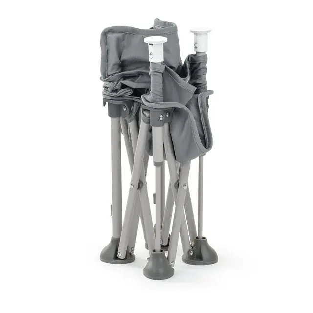 Compact chair easily folds to 5" x 15" Easy to clean with dishwasher safe, BPA-free tray and machine washable seat pad Gender neutral grey design; includes a rear storage pocket Safety features include 3-point harness and straps for attaching to adult chair Rated for ages 6 months to 3 years or up to 33 pounds