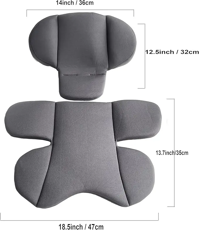 - UNIVERSAL CAR SEAT LINER: The size of the headrest pillow is 36*32cm(14*12.5inch), the back support cushion is 47*35cm(18.5*13.7inch), suitable for car seat, baby cradle, strollers, buggy, baby high chair and so on.