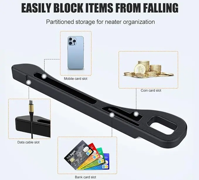 - Prevent small items from falling: Say goodbye to lost keys, loose coins or cell phones slipping into the gap between your seat and the center console. Our car gap filler provides a safe barrier and effectively prevents small items from falling and disappearing into hard-to-reach areas.