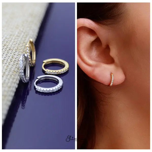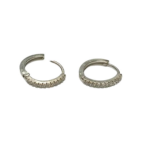 Glitters 925 Sterling Silver 1.5mm wide C.Z One-Touch Huggie Hoop Earrings