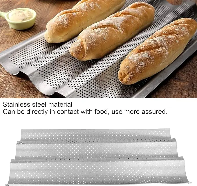 - HIGH-QUALITY MATERIAL: The baggette pan for baking is made of high-quality stainless steel material, which is resistant to high temperature. french bread baking pans help optimize heat distribution, dissipate heat quickly, transfer heat efficiently.