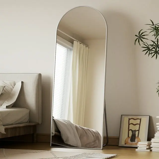 BEAUTYPEAK Arched 58"x18" Full Length Mirror Floor Mirror Sturdy MDF Mirror with Stand Full Body Mirror, Silver