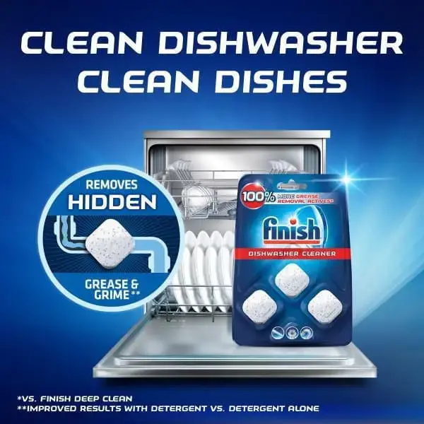 Finish® In-Wash Dishwasher Cleaner provides 100% more grease removal actives* (*vs. Finish All in One detergent) and works by safely and effectively cleaning the hidden and hard-to-reach parts of your machine, including the filter and spray arms. Having a clean and well-maintained dishwasher has never been so simple. Use your In-Wash Dishwasher Cleaner tablets once a week for optimal results and for a fresh and clean dishwasher. Finish® In-Wash Dishwasher Cleaner is easy to use and convenient, simply run with your dishes, no extra wash cycle necessary. Finish® is the #1 Recommended Brand
