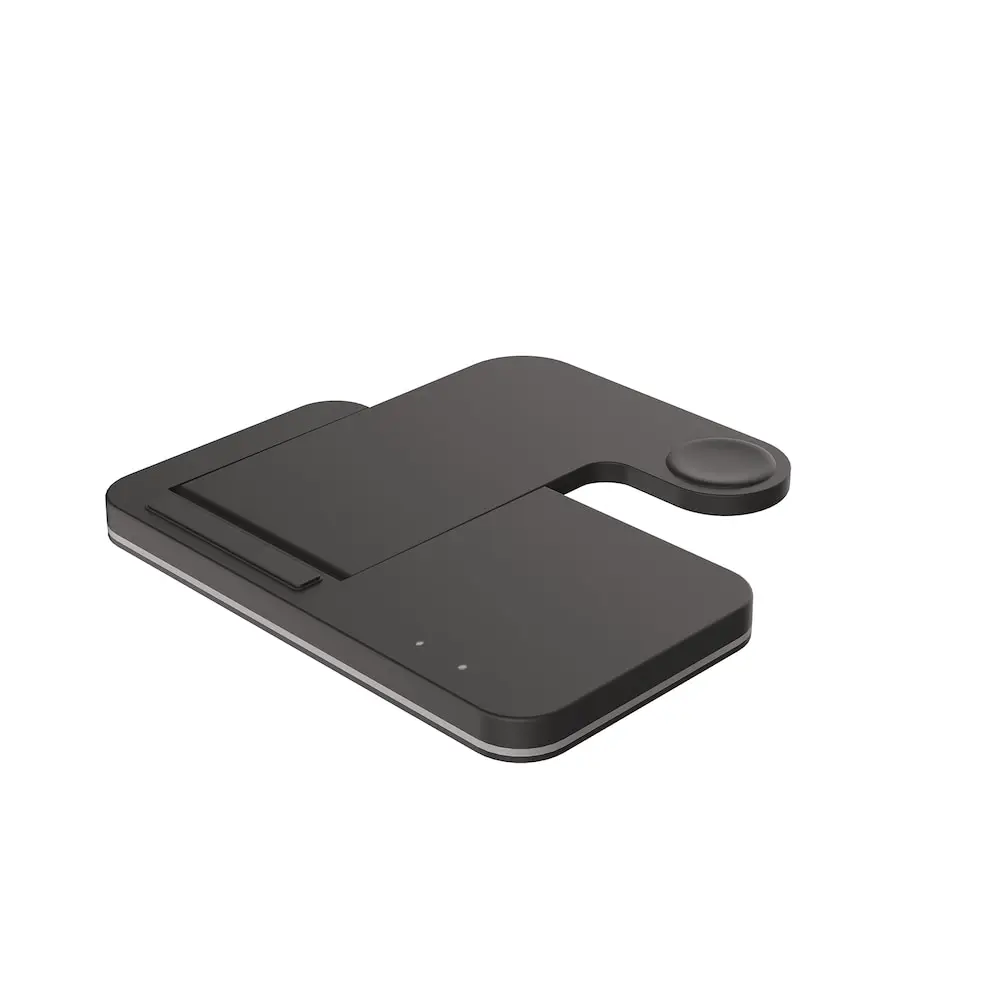 No more messy wires! Charge up to 3 devices at the same time with the 3-in-One Wireless Charging Station. The all in one design lets you charge your iPhone, AirPods, Apple Watch and most Qi enabled devices in one clutter free station. The foldable design is also compact and great for travel.