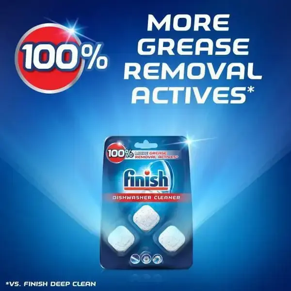 Finish® In-Wash Dishwasher Cleaner provides 100% more grease removal actives* (*vs. Finish All in One detergent) and works by safely and effectively cleaning the hidden and hard-to-reach parts of your machine, including the filter and spray arms. Having a clean and well-maintained dishwasher has never been so simple. Use your In-Wash Dishwasher Cleaner tablets once a week for optimal results and for a fresh and clean dishwasher. Finish® In-Wash Dishwasher Cleaner is easy to use and convenient, simply run with your dishes, no extra wash cycle necessary. Finish® is the #1 Recommended Brand
