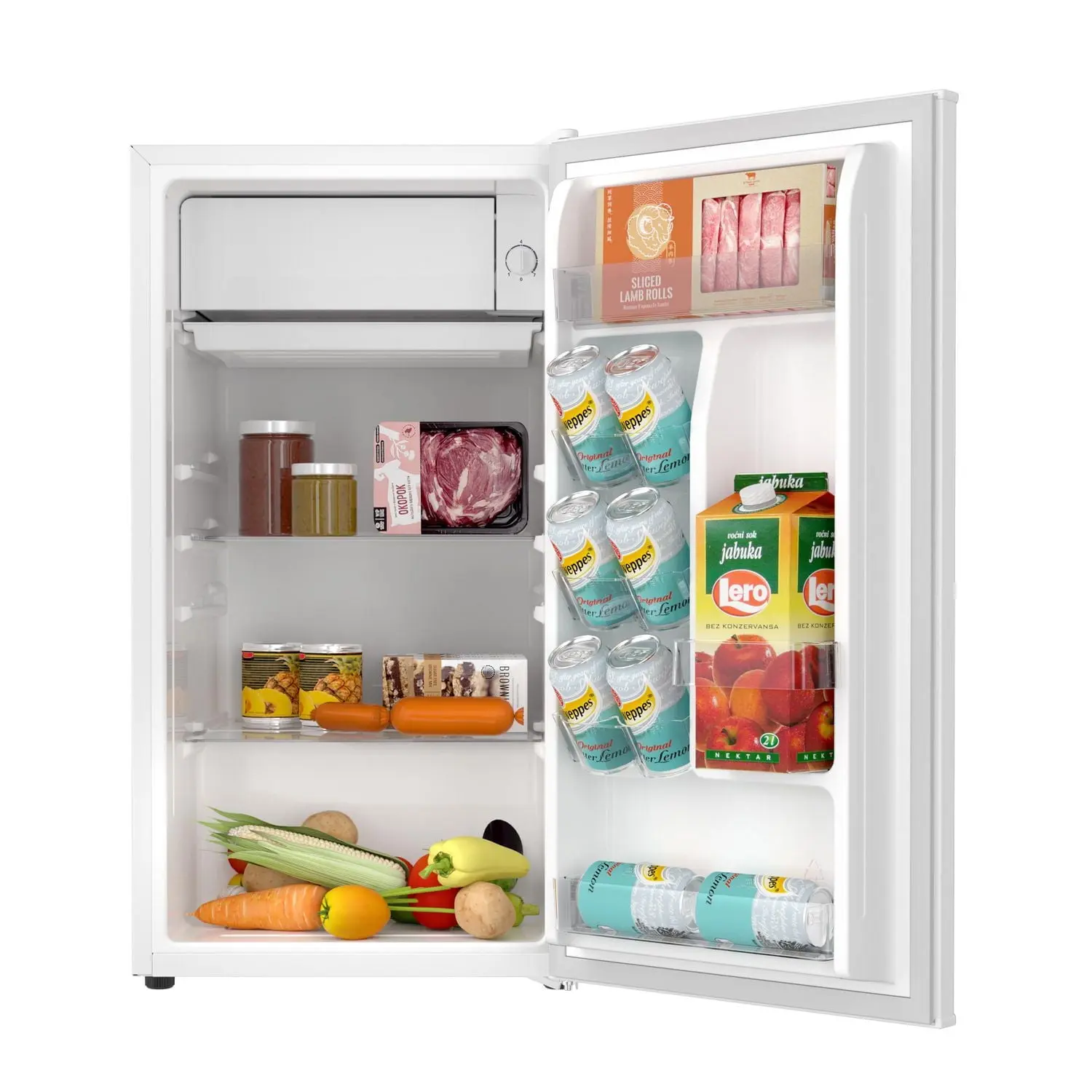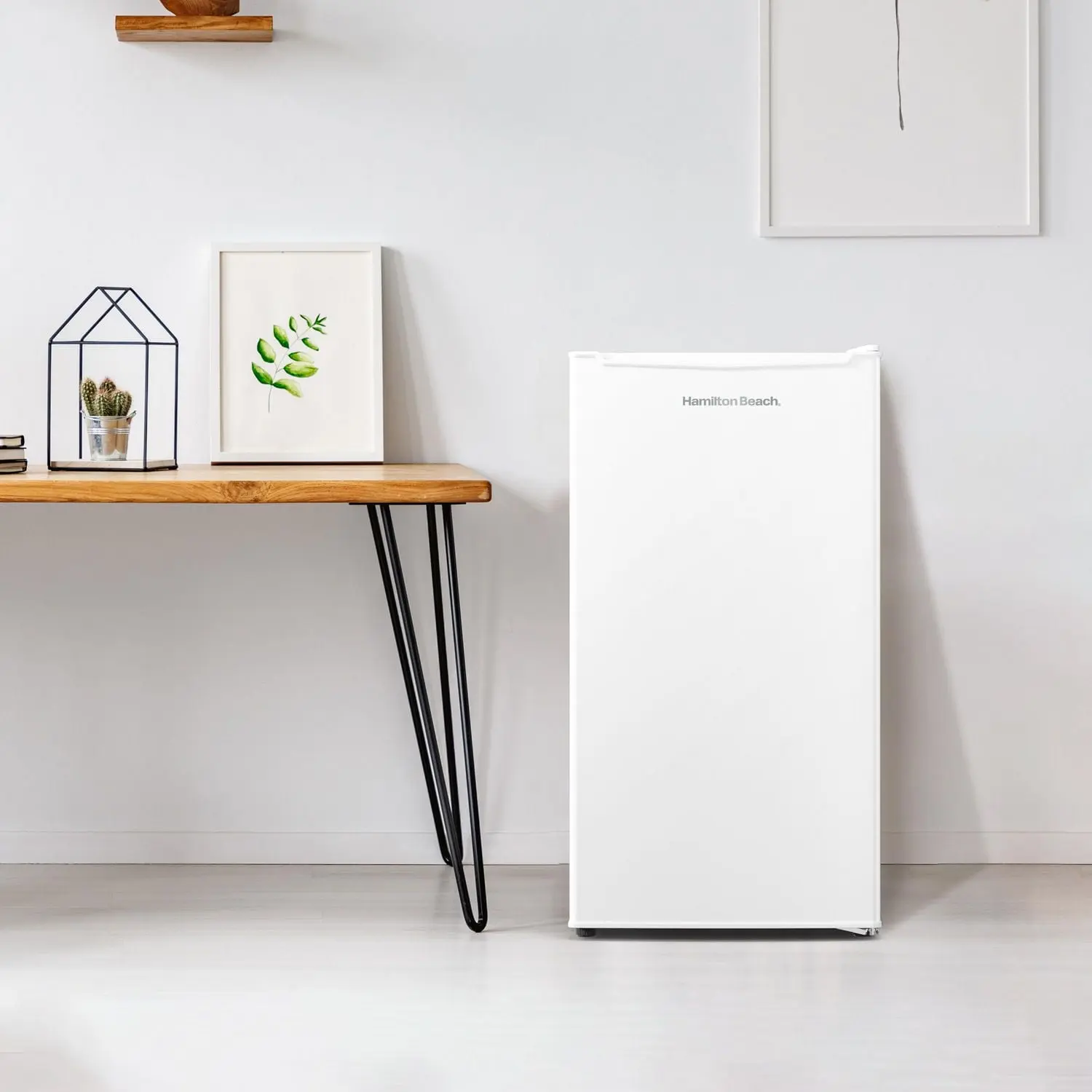 Enjoy the convenience of having your favorite chilled food, drinks, or snacks whenever you want with the Hamilton Beach 3.3 Cu ft Single Door Mini Fridge. The Hamilton Beach 3.3 Cu ft Single Door mini fridge is the ideal size for the dorm room, game room, exercise room, office, garage, bedroom, or any other living space. This Hamilton Beach 3.3 cu ft Single Door mini fridge features a full-width chiller compartment, 2 adjustable leveling legs and a convenient reversible door that allows you to choose to open from the left or right side making the Hamilton Beach 3.3 Cu ft Single Door mini fridge suitable for any layout.