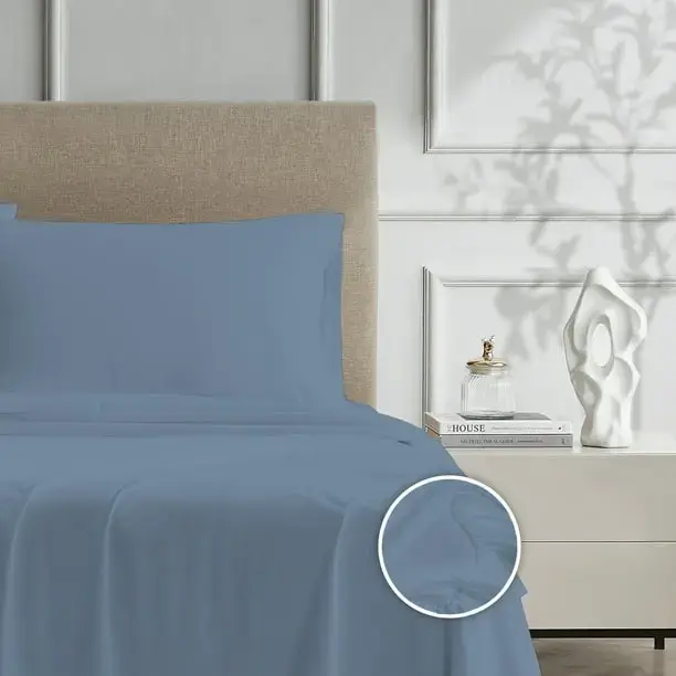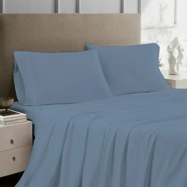 Color Sense 100% Cotton Percale Cool & Crisp 3-Piece Sheet Set Twin Blue