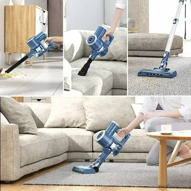 The PRETTYCARE cordless vacuum can be equipped with various attachments for different tasks. The adjustable extension tube and wall-mount design save space. With an ergonomic handle, cleaning is easy. This lightweight vacuum makes a great gift for families with pets or children.