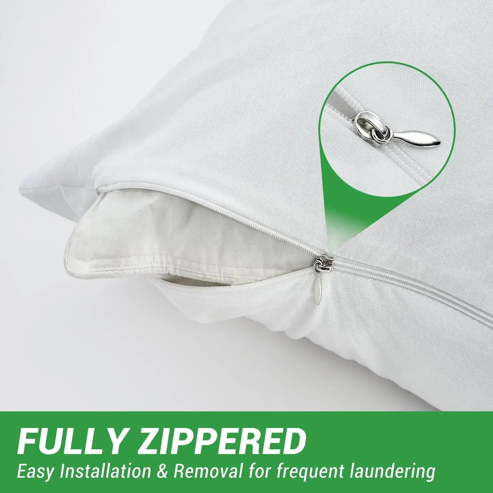 - [Perfect Fit and Zipper Closure] Designed to fit Standard Size 20" x 26" pillows, our Gogreen zippered pillow protector features a wider opening for easy removal and washing. The high-quality hidden metal zipper enhances protection, ensuring your pillow stays fully protected.