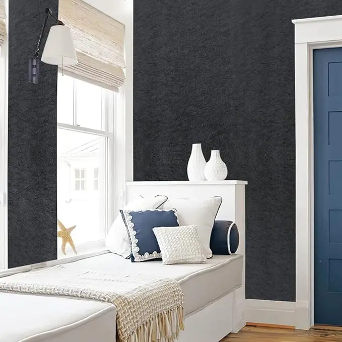 - 【PREMIUM MATERIAL】 This Black Silk Contact Paper made of high-grade thicker Decorative Vinly and ECO friendly glue, free of heavy metals, Waterproof and Oil-proof Wallpaper, durable and easy to clean. Unique silk embossed pattern looks great on the wall or furniture