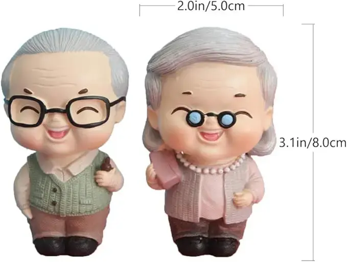 - 👴👵 Suitable Size: Elder husband and wife celebrating anniversary figurine measure 8x5x4cm / 3.14x1.97x1.57in. Great accessory for birthday cakes, mini gardens, doll house, which will add a sweet touch.